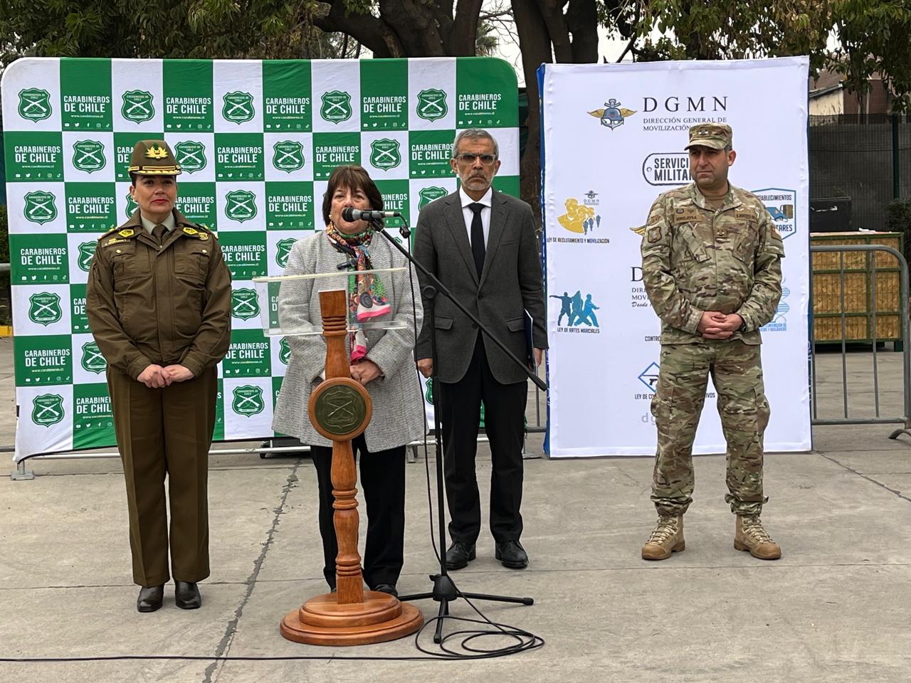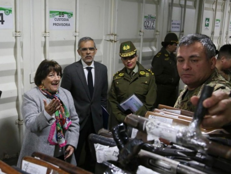 Con la presencia de la ministra de Defensa, Adriana Delpiano, junto al ministro de Seguridad Pública, Luis Cordero, el Director de la Dirección General de Movilización Nacional General de Brigada, Jorge Hinojosa se realizó la tercera inutilización de armas de este año.