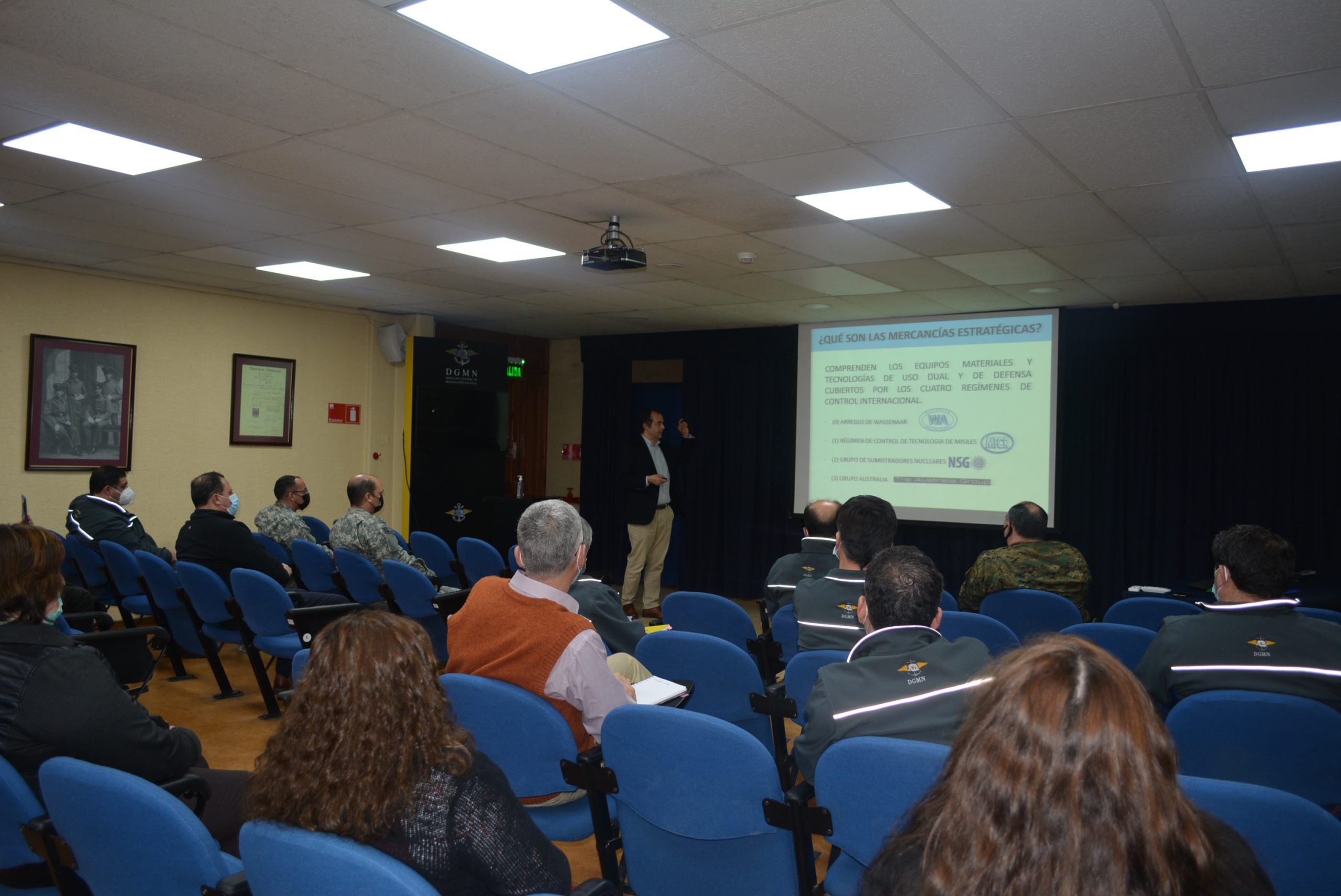 La Dirección General de Movilización Nacional (DGMN) en su rol de Autoridad Central de Coordinación Nacional, recibió al Asesor de Seguridad Internacional del Ministerio de Relaciones Exteriores Juan Pablo Rosso, quien capacitó en materias de Comercio Estratégico al Departamento de Control de Armas y Explosivos de la DGMN.