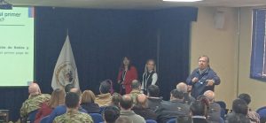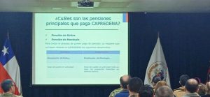 En la oportunidad las funcionarias de CAPREDENA expusieron sobre los beneficios que esta entidad entrega al personal, pensiones de retiro y montepío, pagos de pensiones, desahucios, prestamos habitacionales que otorga, entre otras materias.