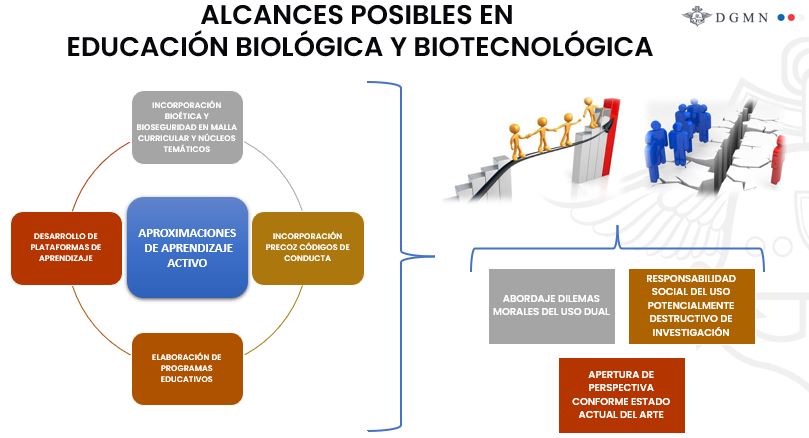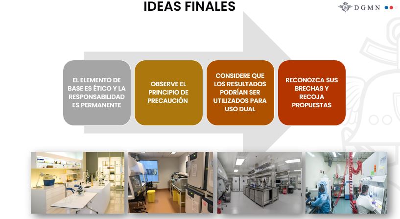 Además, se abordaron las ideas principales sobre la biocustodia en investigaciones de interés particular, como aquellas relacionadas con el principio de «ganancia de función». También se discutió cómo el desbalance el desbalance entre desarrollo y ética pueden condicionar un potencial uso destructivo de la investigación.