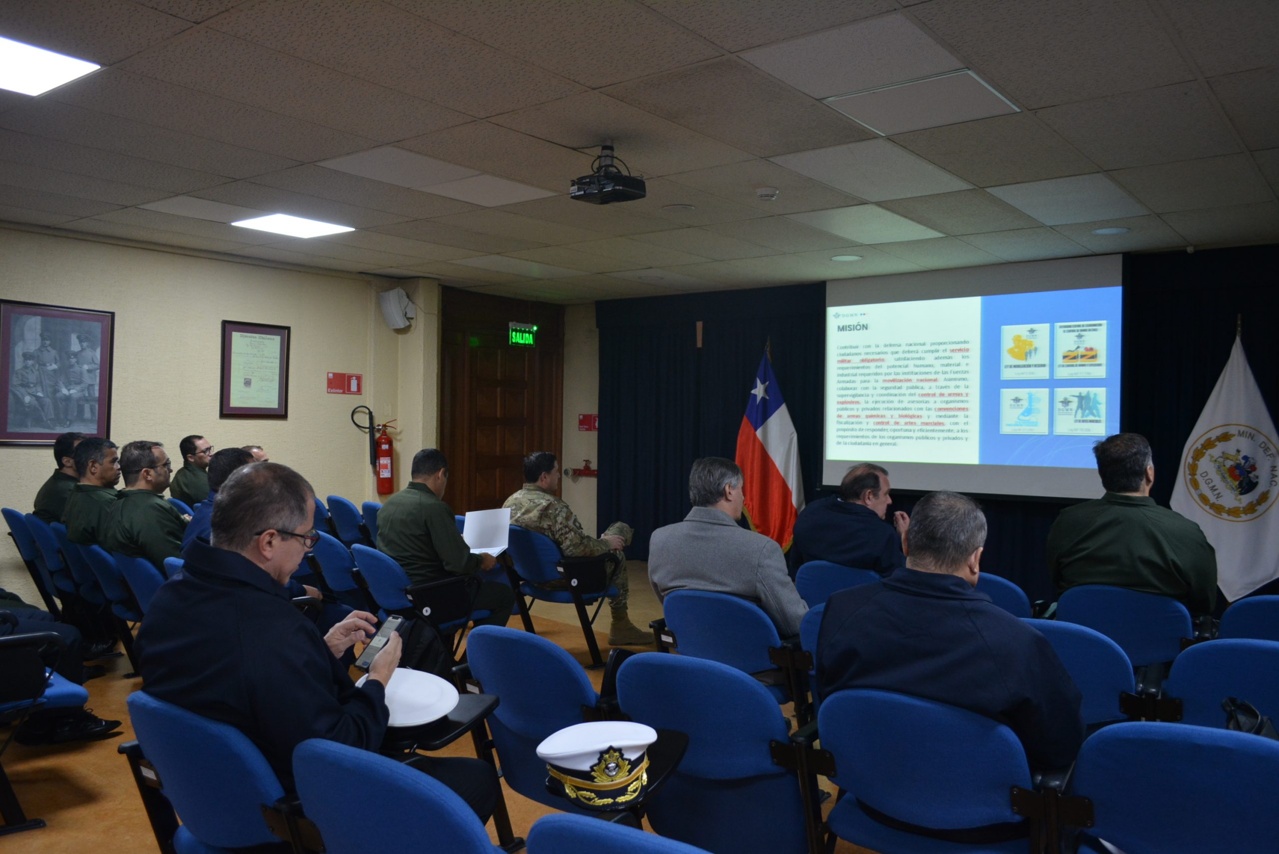 En la oportunidad, el Director General de la Dirección General de Movilización Nacional , General Patricio Carrillo Abarzúa se refirió a la misión y labor de la DGMN y de los productos estratégicos que esta Alta Repartición Ministerial de Defensa posee, como lo es el Servicio Militar, Control de Armas y Explosivos, Artes Marciales, Movilización y Reserva, Convenciones sobre la Prohibición del desarrollo, la producción , el almacenamiento y el empleo de Armas Químicas y su Destrucción , La convención sobre la prohibición del desarrollo, la producción , el almacenamiento de Armas Bacteriológicas y Toxínicas, productos estratégicos que le dan valor a la Defensa Nacional.