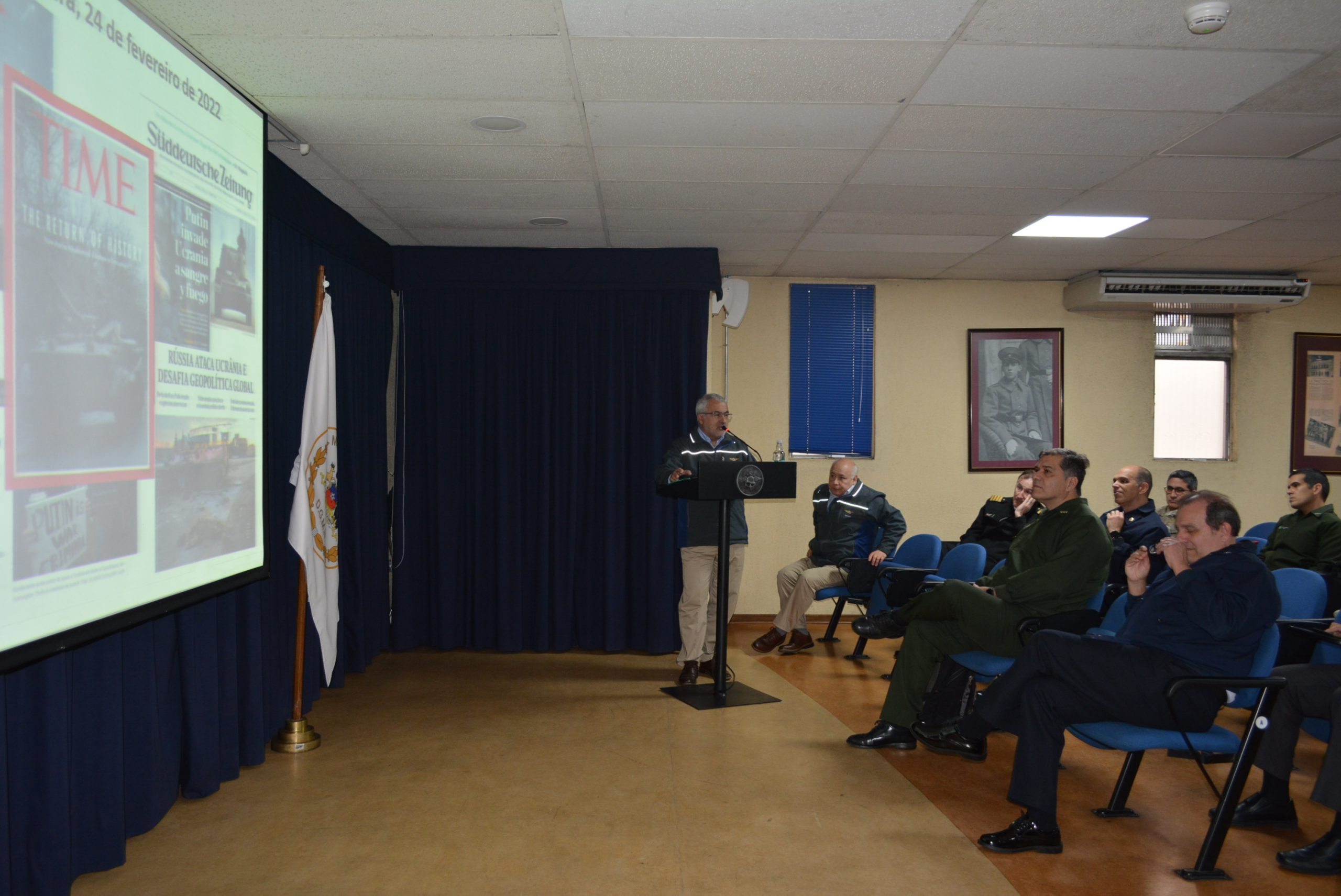 Publicado: 27/06/2023Autoridades exponen sobre Movilización y Reserva al Curso de Estado Mayor Conjunto de la Escuela Superior de Guerra de Brasil.