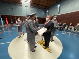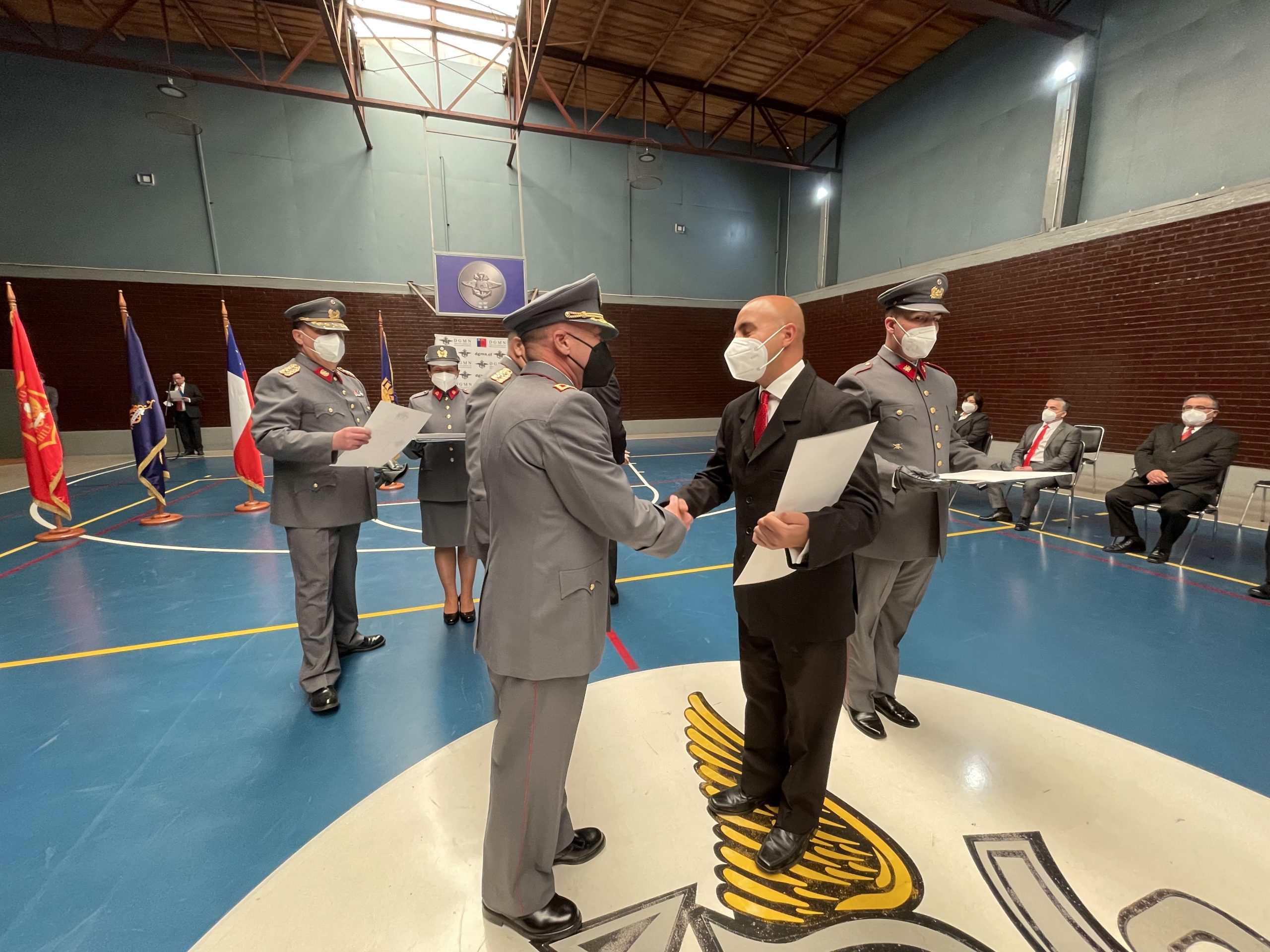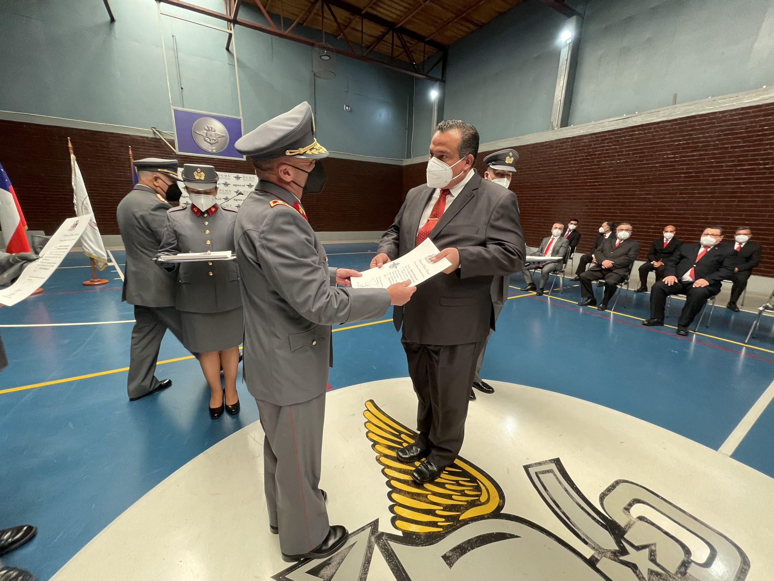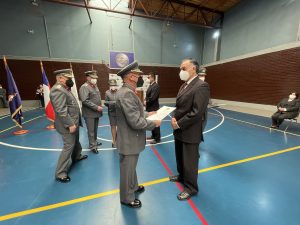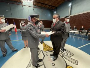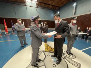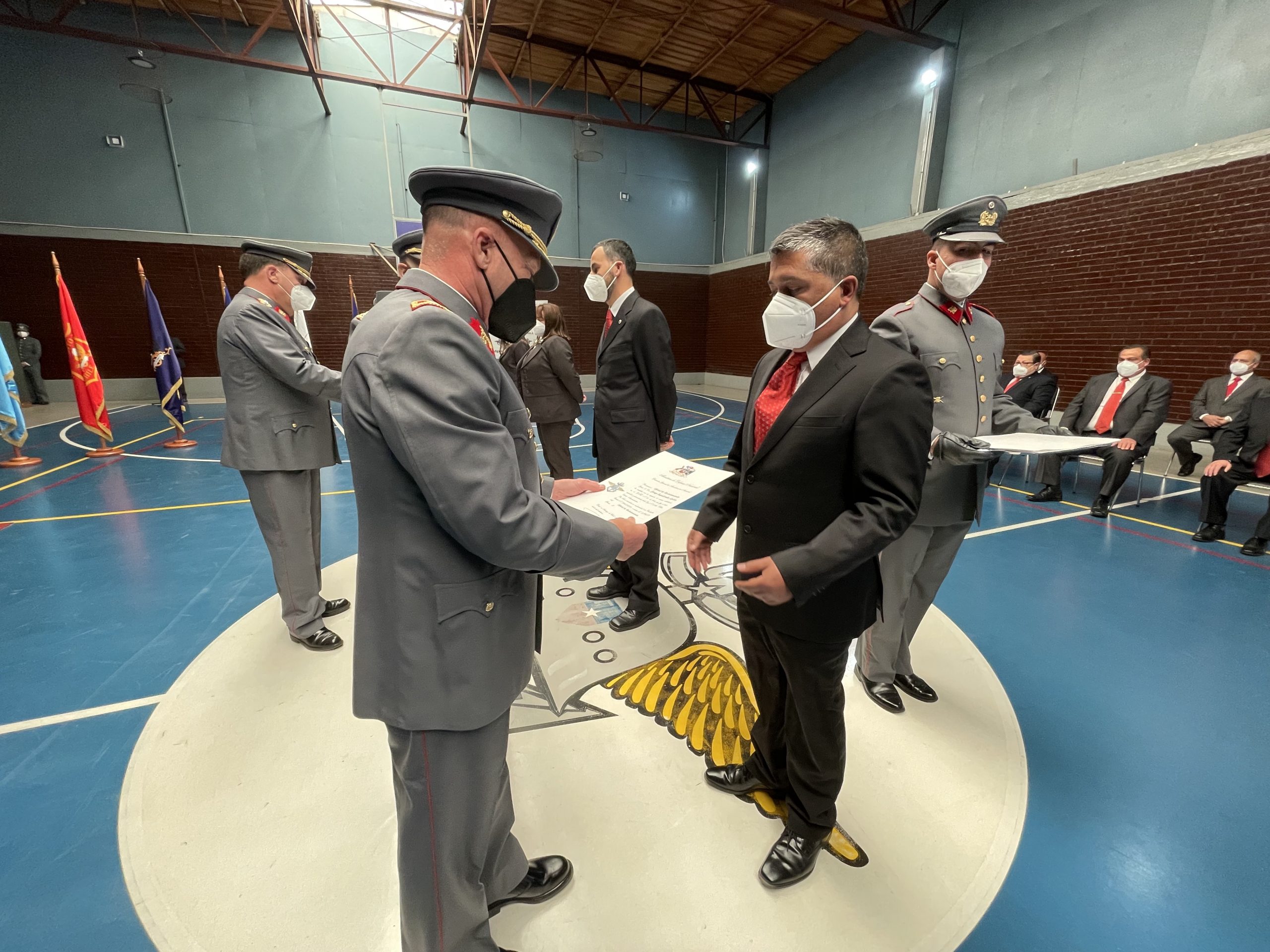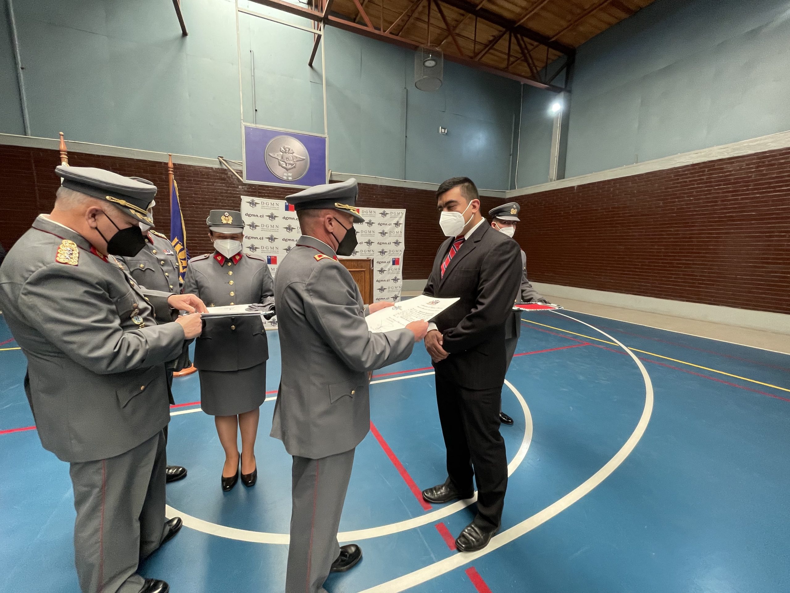 Durante la ceremonia, el Director de la DGMN, General de Brigada Luis Rojas Edwards acompañado por el Subdirector General, Coronel Nelson Robledo Aldana y por el Jefe del Departamento de Reclutamiento, Coronel Fredy Kirst Gimpel, , hizo entrega de diplomas a los oficiales que ascendieron en el escalafón.