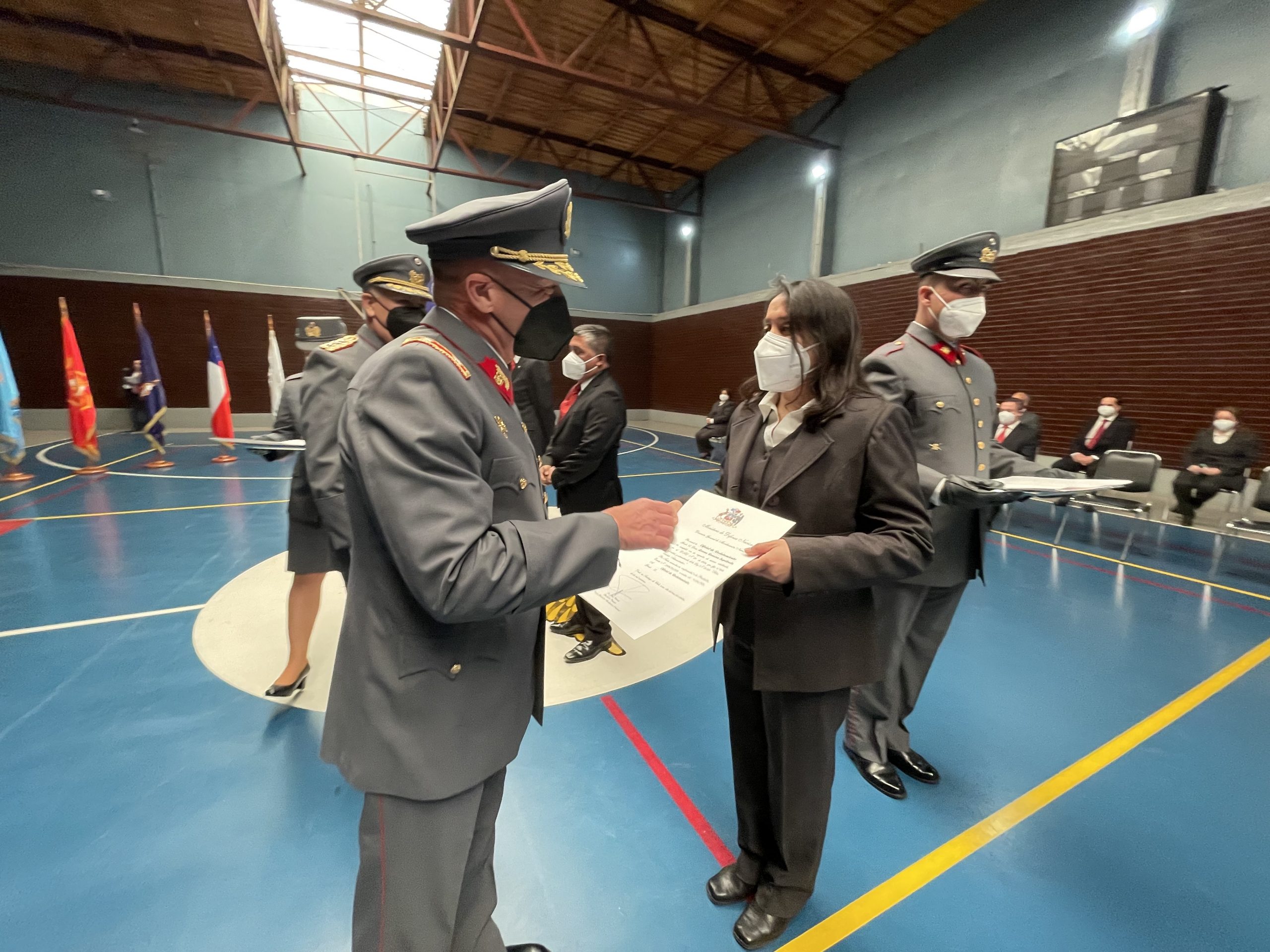 Asimismo, ascendió a Inspector General Doris Ortega Leiva, convirtiéndose en la primera mujer del escalafón de oficiales de reclutamiento en ejercer ese grado.