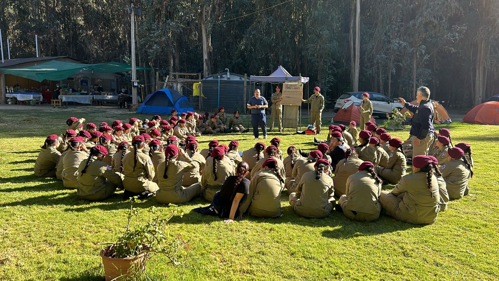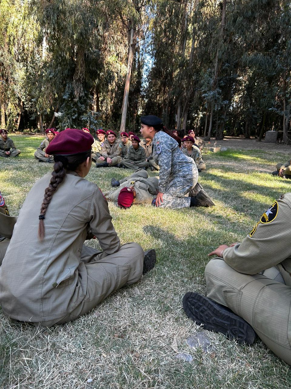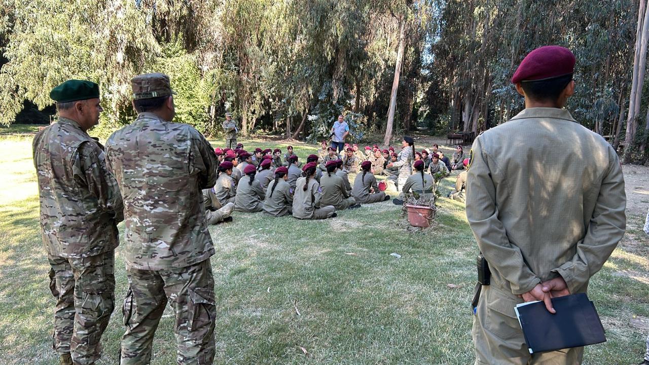 Posteriormente, se reunió con la totalidad del alumnado e instructores en terreno, destacando a dos integrantes del cuerpo de brigadieres, poniendo de relieve la actividad premilitar realizada a nivel nacional.