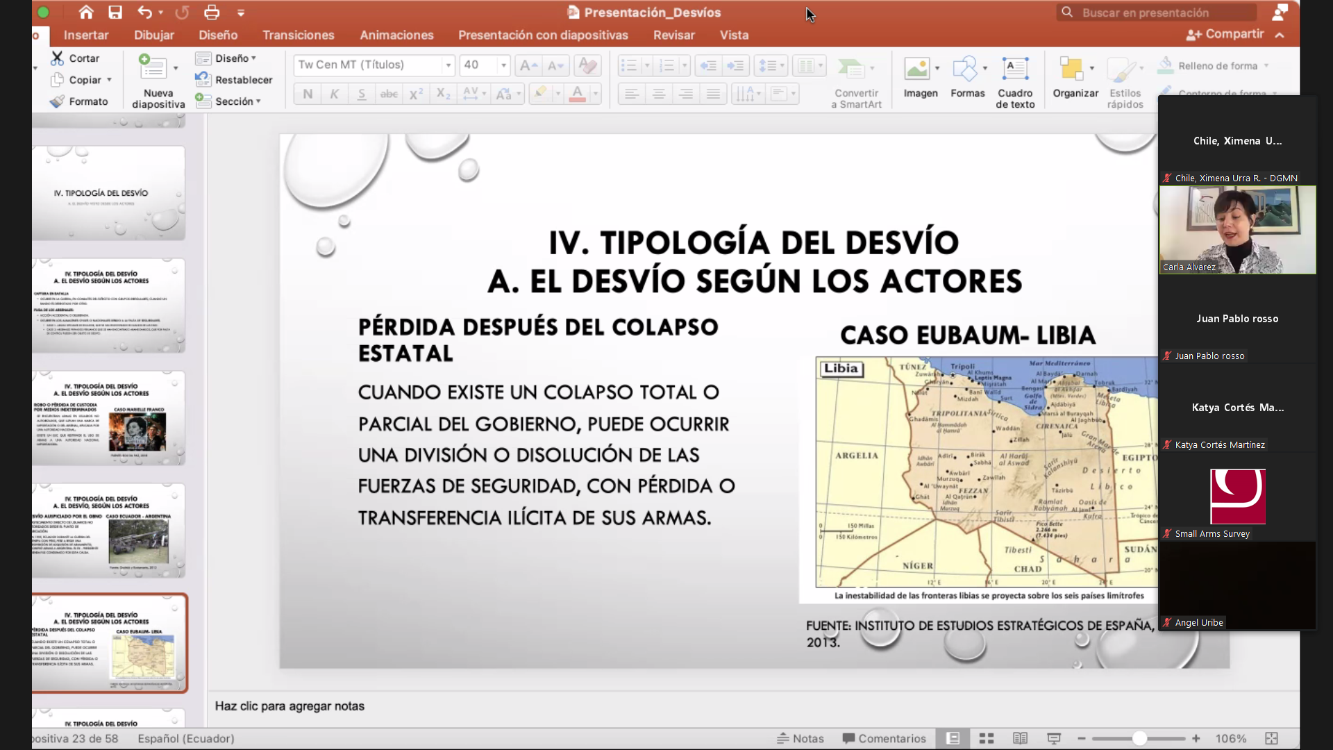 El Departamento de Control de Armas de la Dirección General de Movilización Nacional (DGMN) participó, en línea, en Seminario de Capacitación “Desarrollando capacidades para prevenir, detectar y responder al desvío de armas convencionales”, organizado por el Ministerio de Relaciones Exteriores de Chile, la Cancillería de Colombia y la organización Small Arms Survey, desarrollándose los días 11, 12, 25 y 26 de abril del presente año.