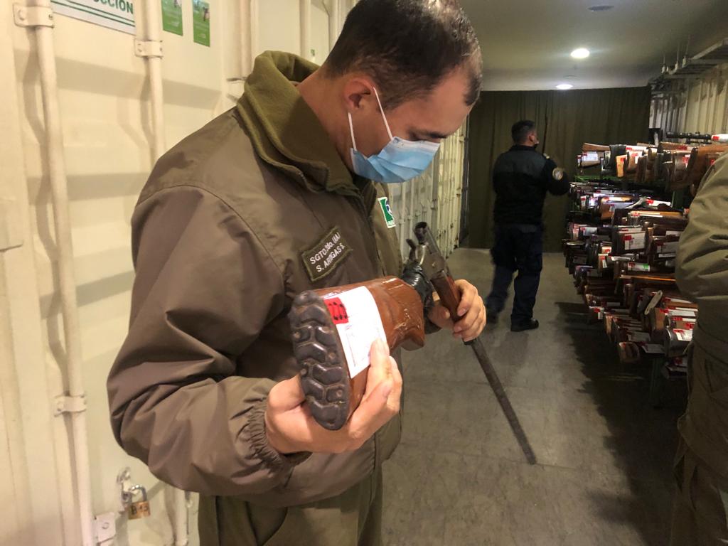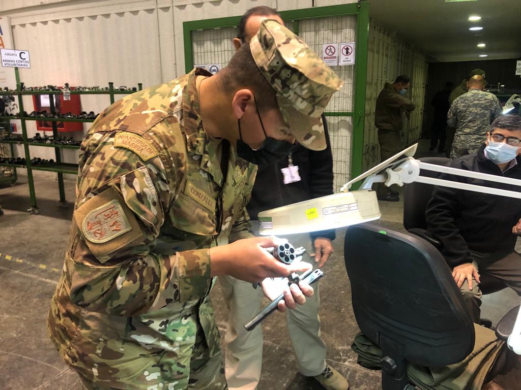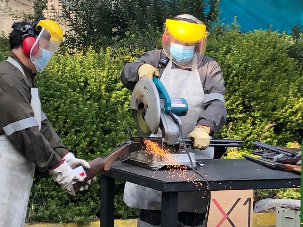 Durante la actividad, los funcionarios de la PDI pudieron interiorizarse y apreciar el proceso de inoculación, inspección, inutilización de armas y posterior resguardo de las mismas en cajas herméticamente selladas y custodiadas, que serán fundidas a fines de este año, en el proceso anual de destrucción de armas.