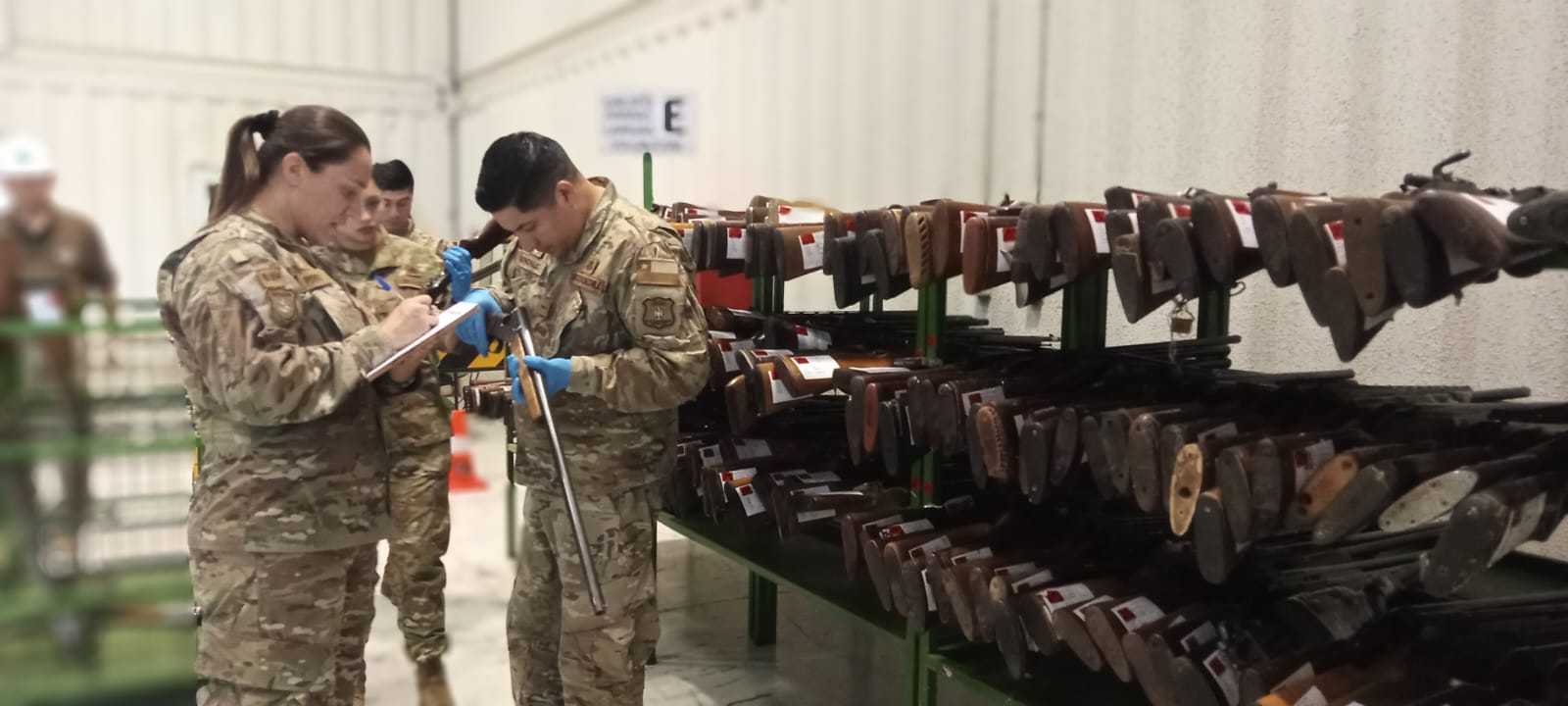 De estos, 1.243 armas provenientes de entrega voluntarias, como por comiso, 367 accesorios y una máquina recargadora fueron inspeccionados por los delegados de la Comisión, integrada por personal de las Fuerzas Armadas, Carabineros y Policía de Investigaciones de Chile, para posteriormente ser depositadas en cajas herméticamente selladas y estrictamente custodiadas a la espera de su destrucción ue se realizará a fin de año en la empresa AZA.